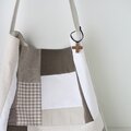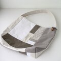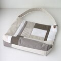 コットンやリネンなど、自然素材の布を丁寧に組み合わせて仕立てたショルダーバッグです。