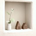 シンプルな空間に、さりげなく木の表情を添える小さな家たち。