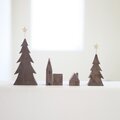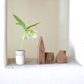 そっと飾るだけで、小さな物語が始まりそうな木の家たち。