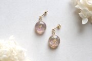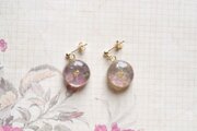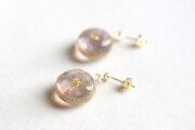 淡いブラウンと紫のレジンを円形に固めて、側面にゴールドをあしらった上品なピアス。