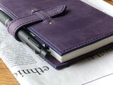 ・ノートの厚さは1.0㎝〜1.5㎝を基準にお作りしております。ベルトが長めなので、多少厚くなってもしっかり閉じることが出来ます。写真に写っているノートは、ほぼ日手帳です。