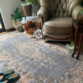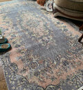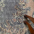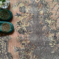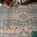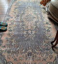 くすみがかったお色味のペールピンクとスモーキーなグレーのニュアンスカラーで、全体のバランスが美しくとっても個性的なトルコラグ