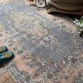 経年変化による擦れや シャビーさもアンニュイなくすみカラーとの相性良く、ヴィンテージラグならではの渋可愛さ、楽しさを感じていただける一枚です