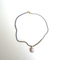 ラピス&オブシディアン&ヘマタイトのネックレス*淡水パールのペンダント★送料無料♪
