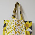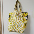 北欧花柄×幾何学模様柄で4枚はぎのころっとした大きめバッグを作りました。