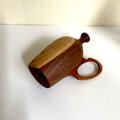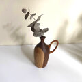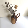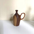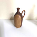 ウォールナットとオークを合わせた材を削り、小さな花器に仕上げました。