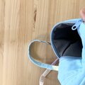 斜めがけにできる細めのショルダーストラップで、両手が自由になります。