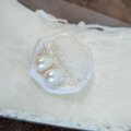 真ん中のビーズは不揃いなアンティークビーズで、その下につややかな淡水真珠2つぶを斜めに配置しています。