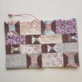 《モンキーレンチ》のクッションカバー30㎝ 茶×紫素敵な色合いや柄や丁寧な縫製に大満足です!温かさを感じるパッチワークです ありがとうございました m(_ _)m