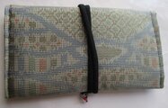 唐桟柄財布 写真より実際の方がいい感じですね、スマホ入れかな?ポーチ(巾着)も付いてて便利そう。和物はなんか落ち着いていいですね、縫製も丁寧で長く使えそうです。
