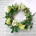 優雅で気品のあるカラーリリーが主役のリースです。ふんわりとしたスノーボールと艷やかなグリーンをあしらい、カラーリリーに合わせるように自然で滑らかな曲線を描く美しさと安らぎが共存するデザインです。カラーリリーを活かしたシンプルな美しさにこだわって作りました。これからの季節にフレッシュで清々しい空気を届けてくれます。全てアーティフィシャルフラワーで作っています。