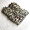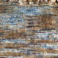 Tea yarnさんの手染め糸を使用しています。茶系、青系、緑系に、オレンジやグレーなど色々な色が混ざり合った糸です。手触りは柔らかくチクチク感はありません。