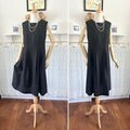 リネン・ダークブラウンのノースリーブワンピース『シャーロット』焦茶・ローウエスト切り替え・一点物・パリのリネン