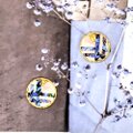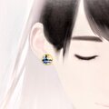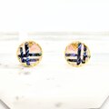 24k金箔の月と螺鈿の格子に白漆のピアスイヤリング【2210】