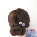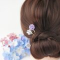 スッと髪に挿すだけでヘアスタイルに和の雰囲気を加える、紫陽花と透明ビーズの玉簪セットです。