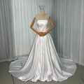 ウエディングドレス ベアトップ 光沢サテン ビスチェタイプ 結婚式 ロングトレーン 色直し
