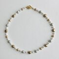 ガラス素材の丸玉や樹脂製のバロックパーツに、オリジナルパール塗料にて何層にも渡り重ね塗りを施した日本製のパールネックレスになります。ガラスパール・樹脂バロックパール各種を複数組み合わせたペールトーンのカラーパールを使用。パールカラーはきめ細かい質感と優しい艶感のオリジナルペールトーンカラー。パウダーグレー・カーキブラウン・サンドベージュ・ホワイトの4色。長さは服の上からでも気軽に着けられる全長約50cmとなっております。