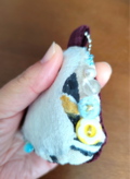 使っているモノ→布、布用絵具、ボタン、ビーズ、天然石、水晶、綿、ボールチェーン