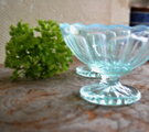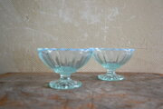 昭和レトロのプレスガラス水色氷カップ2客です。