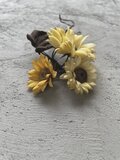 3種の異なる向日葵を束ねた、華やかで存在感のある一点もののコサージュ。