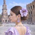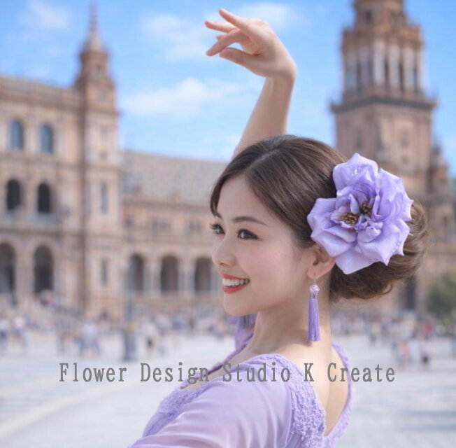 ラベンダー色の大輪の薔薇の髪飾り 紫 パープル 薄紫 バラ ダンス 髪飾り フラメンコ フローレス 花飾り flamenco