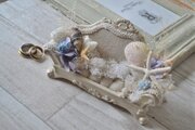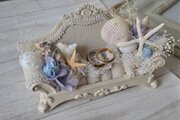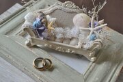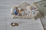 貝殻で飾ったミニチュアソファ―型リングピロー