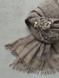 ナチュラルな風合いを感じる、撚りの美しさが魅力のコサージュです。 繊維を自然に撚り合わせることで、ほつれた部分が生む独特の風合いにあたたかさがあり、垂れ下がるデザインは風になびく姿がとてもたおやかです。