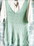 軽やかなペールグリーンの毛糸でさらりとした肌触りです。