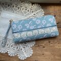 L字ファスナー長財布・花レース使用(エメラルドグリーン系)