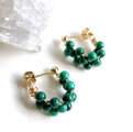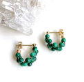 グリーンの縞模様が美しいコンゴ産、高品質マラカイトのラウンドビーズをたっぷりと編み込んだミニサイズのフープピアスです。