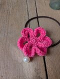 ビビッドピンクのお花とビーズの組み合わせです。