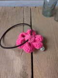 ビビットピンクの毛糸で編んで、製作致しました。