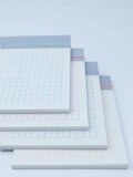 古くは平安時代からつくられていたといわれる和綴じ製本。日々のくらしの中で、和綴じ製本を気軽に楽しめないかと考えたのがこの和綴じ帳です。便箋等にも使われるふんわりとした書き心地の和紙に活版印刷で罫線の印刷を施しています。切り離しできるミシン目入り。本来は絹糸でかがりますが、建築現場等の測量の際に使われる丈夫で色鮮やかな水糸(みずいと)で1冊1冊手かがりで製本しています。手のひらにおさまるSサイズは、メモ帳として最適です。縦書きでも横書きでも思いつくままにお使いください。