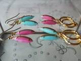ヴィンテージ Roseミルク ナヴェット(15×4㎜)14Kgfピアスまたはイヤリング