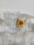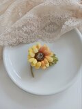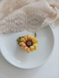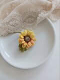 ビタミンカラーに染めたミニひまわりをブローチに仕上げました。