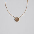 円形の縁に6ピースのブラウンダイヤモンドを彫り留めしたデザインになります。