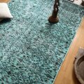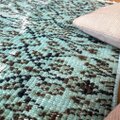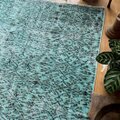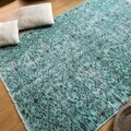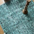 ヴィンテージのラグに、もう一度命を吹き込む“オーバーダイ”。その手法によって生まれた、深みのあるターコイズブルーが印象的な一枚。