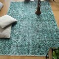 110×150 ボタニカル ターコイズオーバーダイ トルコヴィンテージラグ