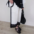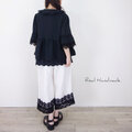 [予約販売] Coco noir・ブラックレースと白リネンの半端丈パンツ