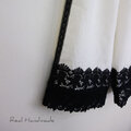 ポケット口とサイドには、ブラックのトーションレースをすっと縦に飾って。