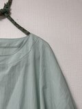質のよいコットンワッシャーでブラウスを制作いたしました。お袖は五分丈のバランスで、肩から身頃にかけてのドレープがデザインポイント、切り替え衿の前中心にスリットが入りワンポイントになっています。袖口と裾に細コールゴムを入れ、ふんわりと締め付け過ぎない設計です。