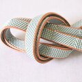 薄緑色のサイドに淡いオレンジ色の変わり組紐の帯締めをリメイクしました。