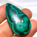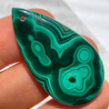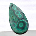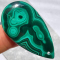 個性的なグリーンの層状模様が美しい、マラカイトのしずく形ルースです。