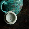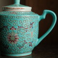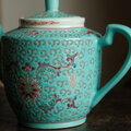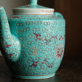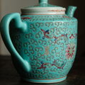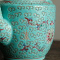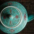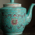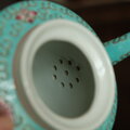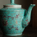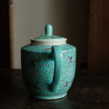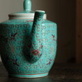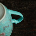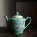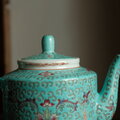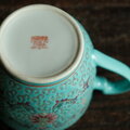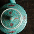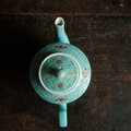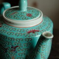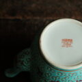 チャイナレトロで可愛い◆花唐草と漢字と蝙蝠。中国景徳鎮 色絵急須 茶器 グリーン ビビットカラー i1