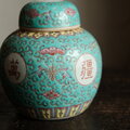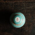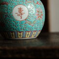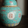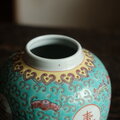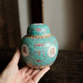 チャイナレトロで可愛い◆花唐草と漢字と蝙蝠。中国景徳鎮 色絵蓋付茶壷 茶器 グリーン ビビットカラー インテリア i1