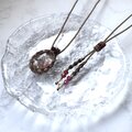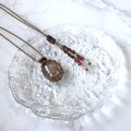 ペンダントトップ上部にガーネット、エンドにはガーネットとルチルを使用しています。