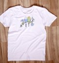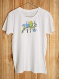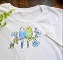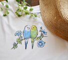 朝顔にセキセイインコが止まった夏らしいTシャツです。