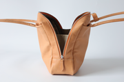 柔らかく、しっとりと手になじむヌメ革で仕立てた、ミニサイズの本革トートバッグです。