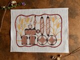 パンモチーフを型染めらしい模様を取り入れて作りました。