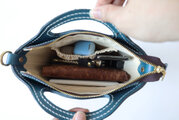 ファスナー開閉式で、中には大きめのポケットが1つあり、小物の整理もばっちり。肩掛けバッグとしても使用できます。